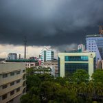 L'hôtel est constitué de 3 tours et 2 piscines extérieures, dont nous ne pourrons pas profiter car un orage s'abat soudain sur la ville, qui prend des allures de mousson.